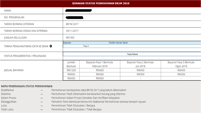 Umum sedia maklum yang status permohonan br1m 2018 samada lulus atau tidak boleh disemak bermula dari 19 februari 2018.