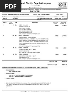 Root Valve Quotation From Sesco Pdf Prices Pipe Fluid Conveyance
