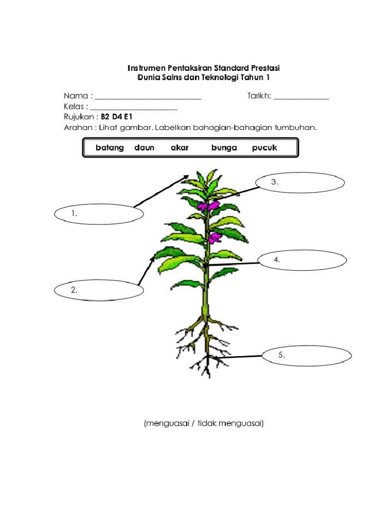 Contoh Latihan Sains Tahun 1 Tumbuhan