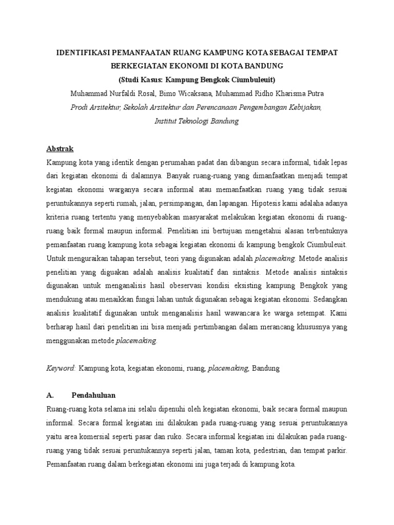 Identifikasi Pemanfaatan Ruang Kampung Kota Sebagai Tempat Berkegiatan Ekonomi Di Kota Bandung