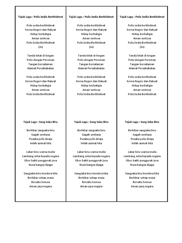 Lirik Lagu Kor Kadet Polis Docx