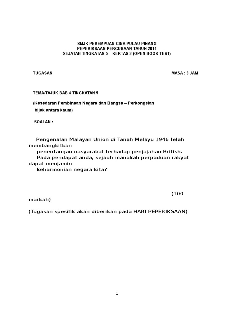 Soalan Kbat Sejarah Tingkatan 5 Bab 4 Malayan Union Selangor P
