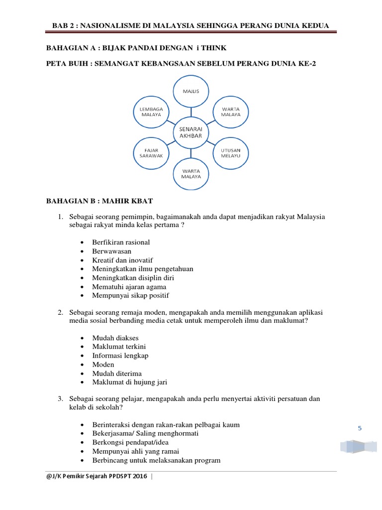 278946995 Sejarah Kertas 3 Bab 2 Tingkatan 5 Nasionalisme Di Malaysia Sehingga Perang Dunia Docx