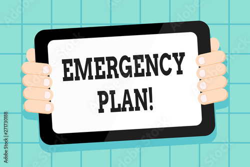 Conceptual Hand Writing Showing Emergency Plan Concept Meaning Course Of Action Developed To Mitigate Damage Of Events Color Tablet Smartphone With Screen Handheld Back Of Gadget Buy This Stock Illustration And