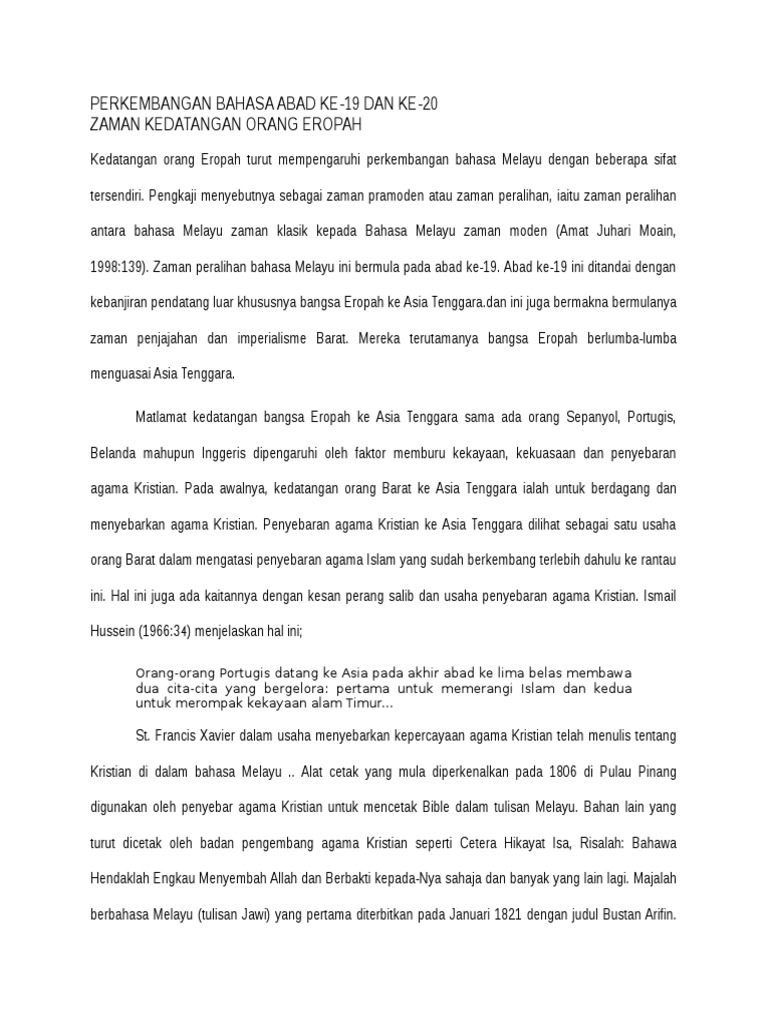 Perkembangan Bahasa Abad Ke 19 Dan Ke 20 Zaman Kedatangan Orang Eropah