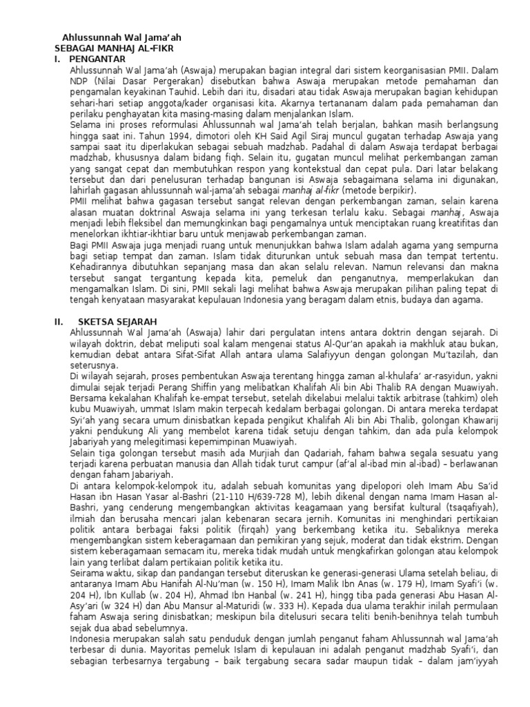 Doc Pengertian Aswaja Karakteristik Prinsip Eksistensi Dalam Kehidupan Modern Muhammad Hanief Academia Edu