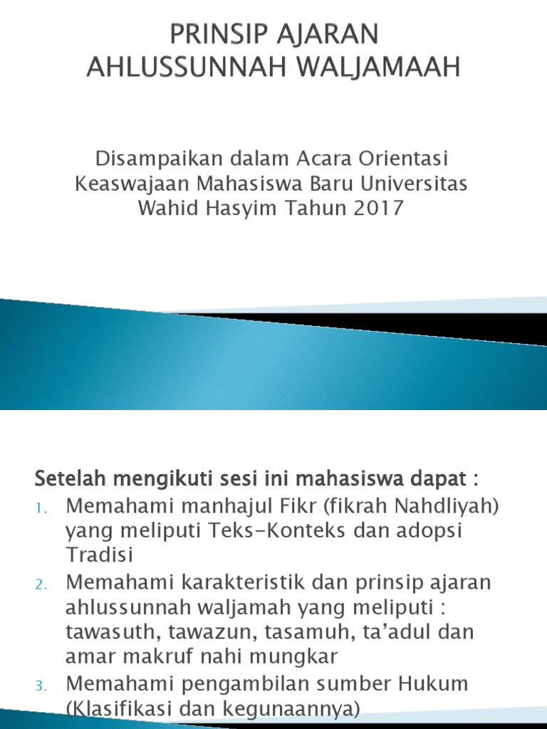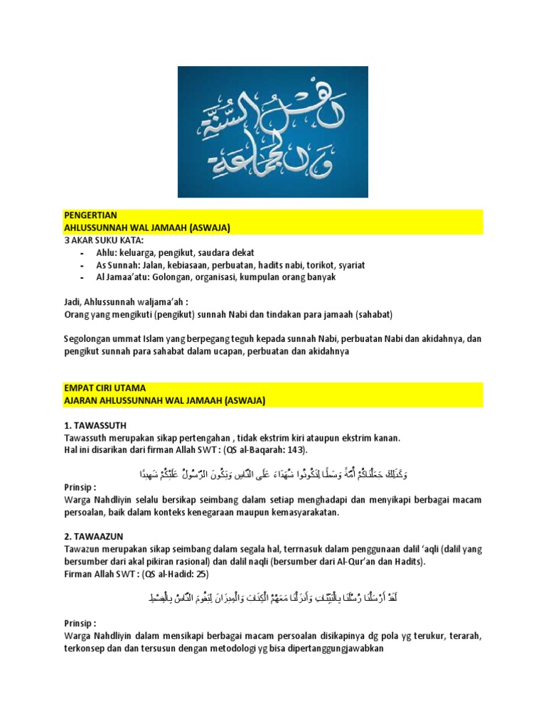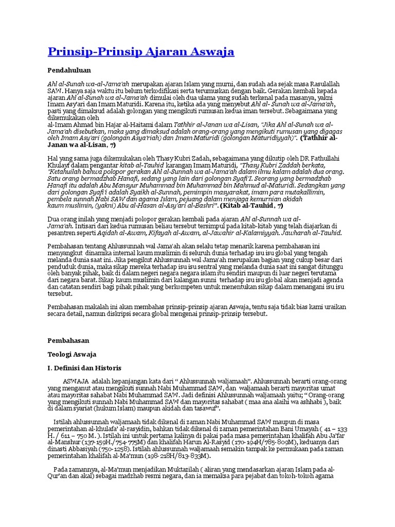 Doc Pengertian Aswaja Karakteristik Prinsip Eksistensi Dalam Kehidupan Modern Muhammad Hanief Academia Edu