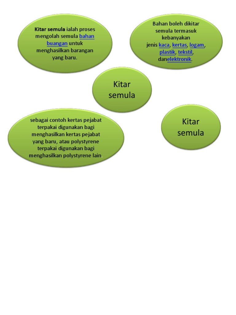 Proses kitar semula bahan buangan. Kitar semula adalah suatu proses bagi memperbaharui atau menggunakan semula barang barang terbuang dan terpakai untuk dijadikan bahan bahan mentah. Sebelum itu mari kita merungkai pengertian kitar semula ini dahulu. Kita perlu bertindak dengan pantas kerana jumlah bahan buangan atau sisa yang di buang oleh kita sendiri semakin meningkat dari. Tetapi walaupun jumlah sampahnya luas hanya kira kira setengah daripada sisa itu dikitar semula.