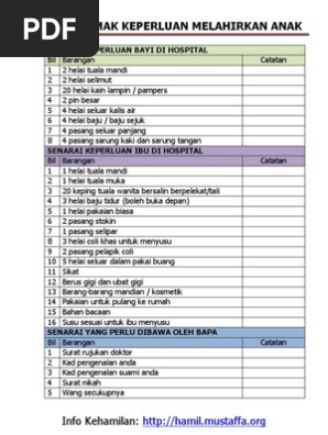 Senarai Keperluan Ibu Bersalin Bayi Baru Lahir Download